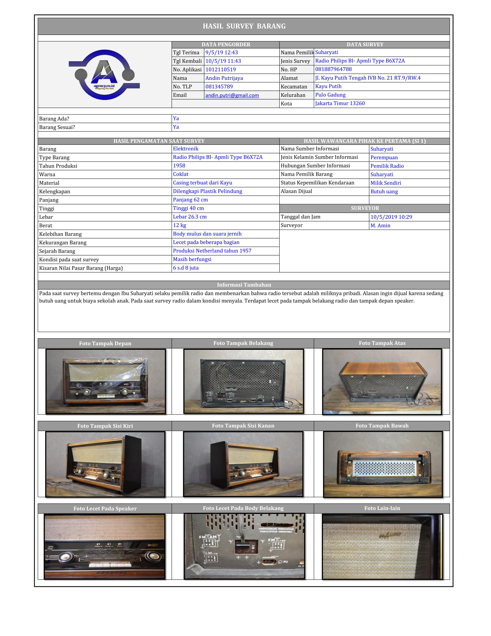 Now days, it's very easy to buy goods through Online. Although the purchase process is very easy, there are many non-authentic goods (KW) and no goods (fraud). There for, to prevent Walau proses pembelian sangat mudah, ternyata banyak sekali barang tidak asli (KW) maupun tidak ada barang (penipuan). To prevent potential buyers from losing, AGENCY.CO.ID will be ready to provide services to survey goods and provide complete survey reports of items of interest.